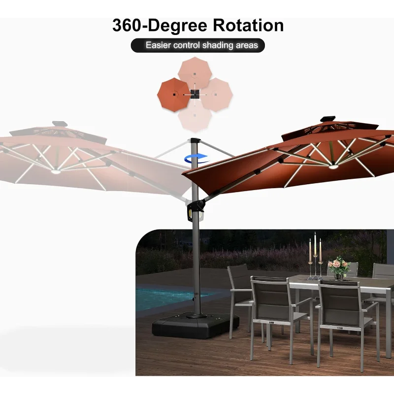 The canopy size of this patio umbrella is 12 ft, unique double-top canopy design for commercial and residential use