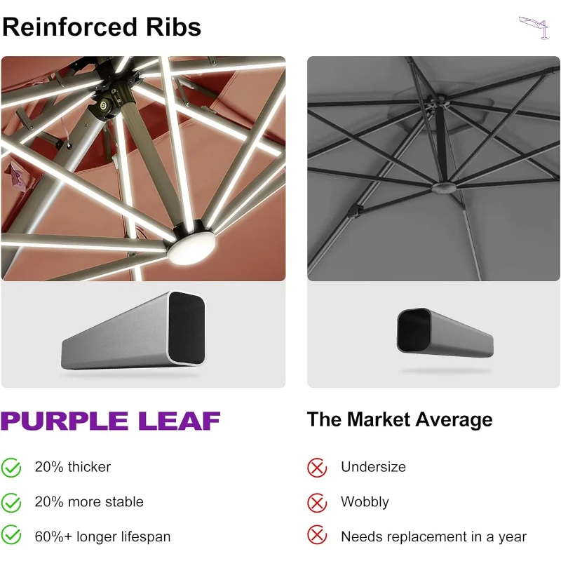 - Structural stability: 8 all-aluminum poles and a wider outdoor umbrella tray, anti-oxidation spray painted, extension of time of use