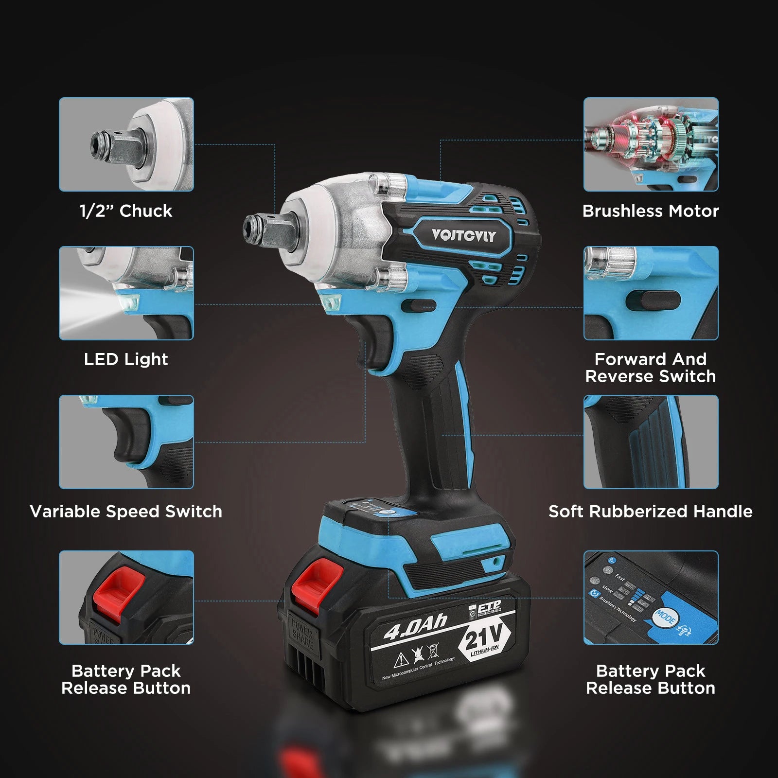 The most important thing for power tools is to have a powerful generator. VQJTCVLY powerful 21V engine has a maximum of 400 N.m , and the fastest speed can reach 3000rpm, allowing you to save time and effort during work.