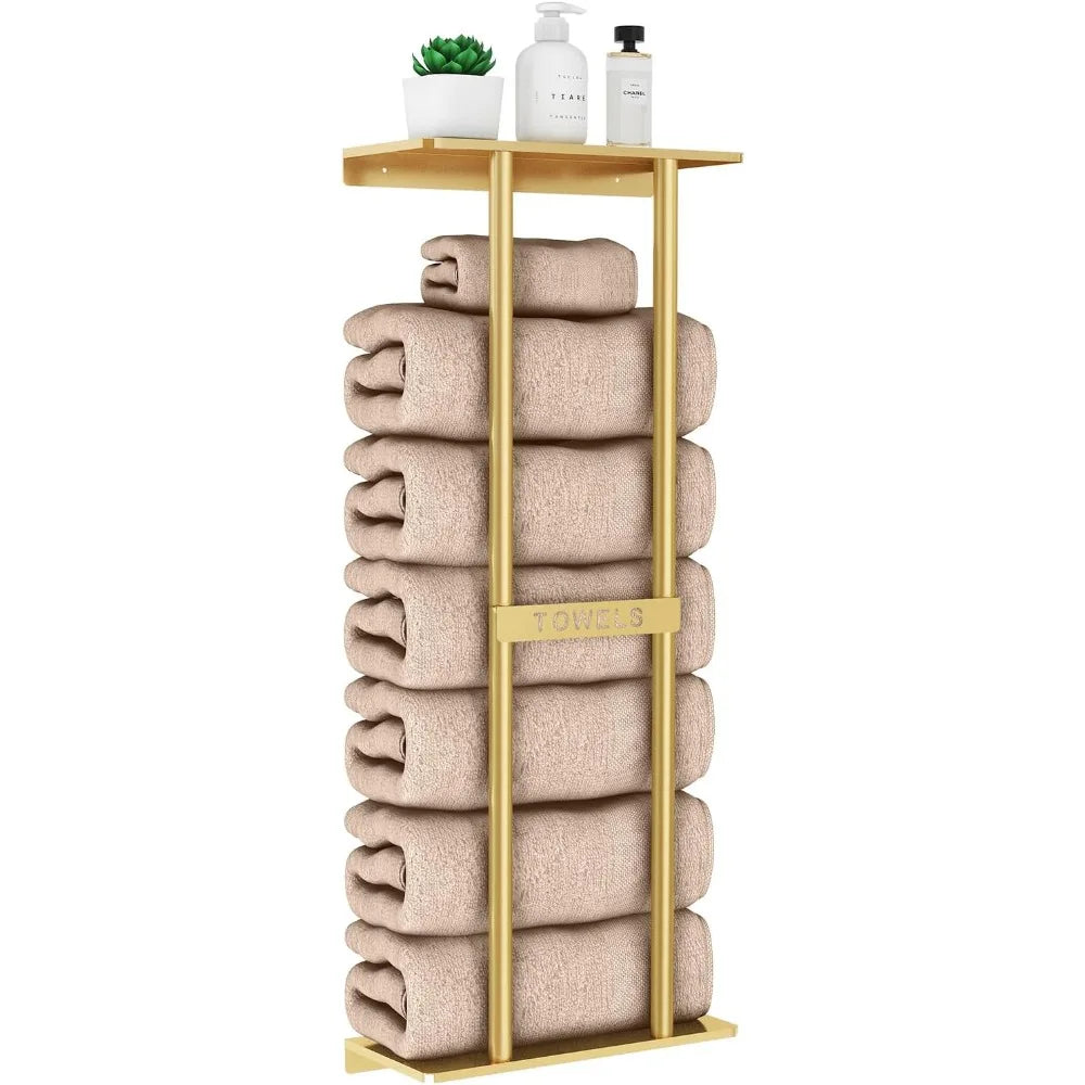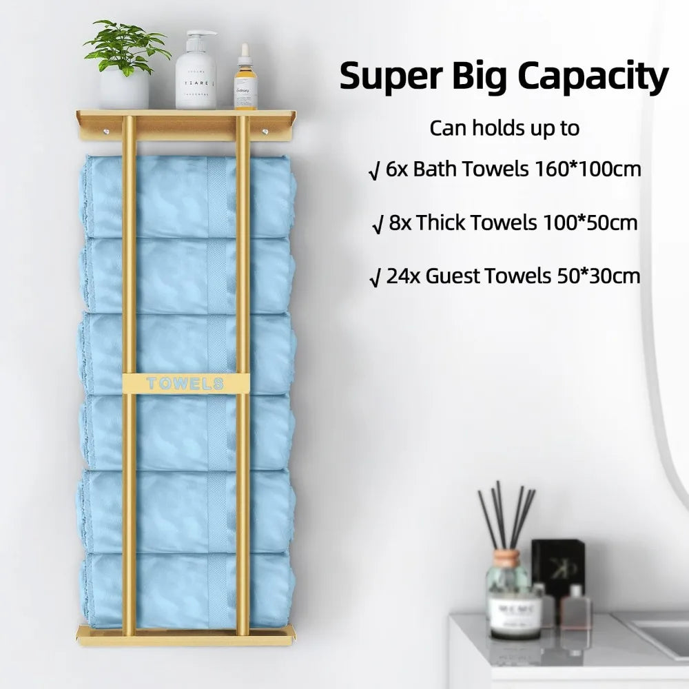 - Bathroom Towel Storage: If don't have a linen closet in your bathroom, don't have any place put towels, this towel shelf was what you have been looking for. Top shelf for bathroom essentials, rolled rack Can Holds 6 Large Towels