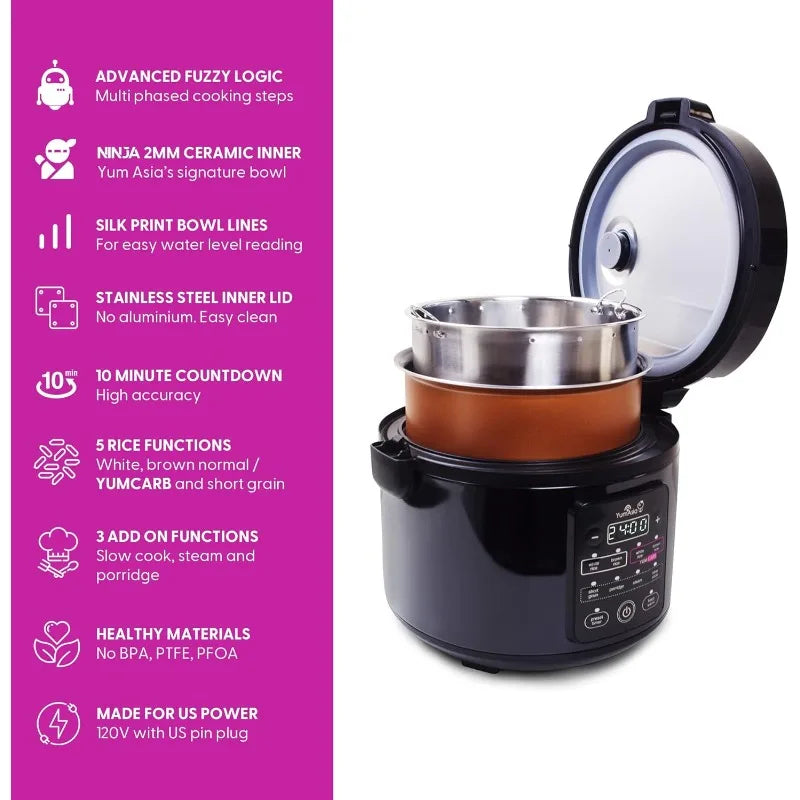 - PERFECT RICE AT THE TOUCH OF A BUTTON - White rice/long grain, short grain/sushi and brown rice settings with unique low carb (YumCarb) healthy cooking feature. Multi phased cooking means perfect texture, taste and aroma