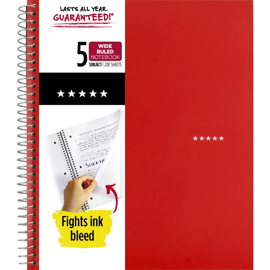 5 Subject Spiral Notebook Wide Ruled 8 x 10