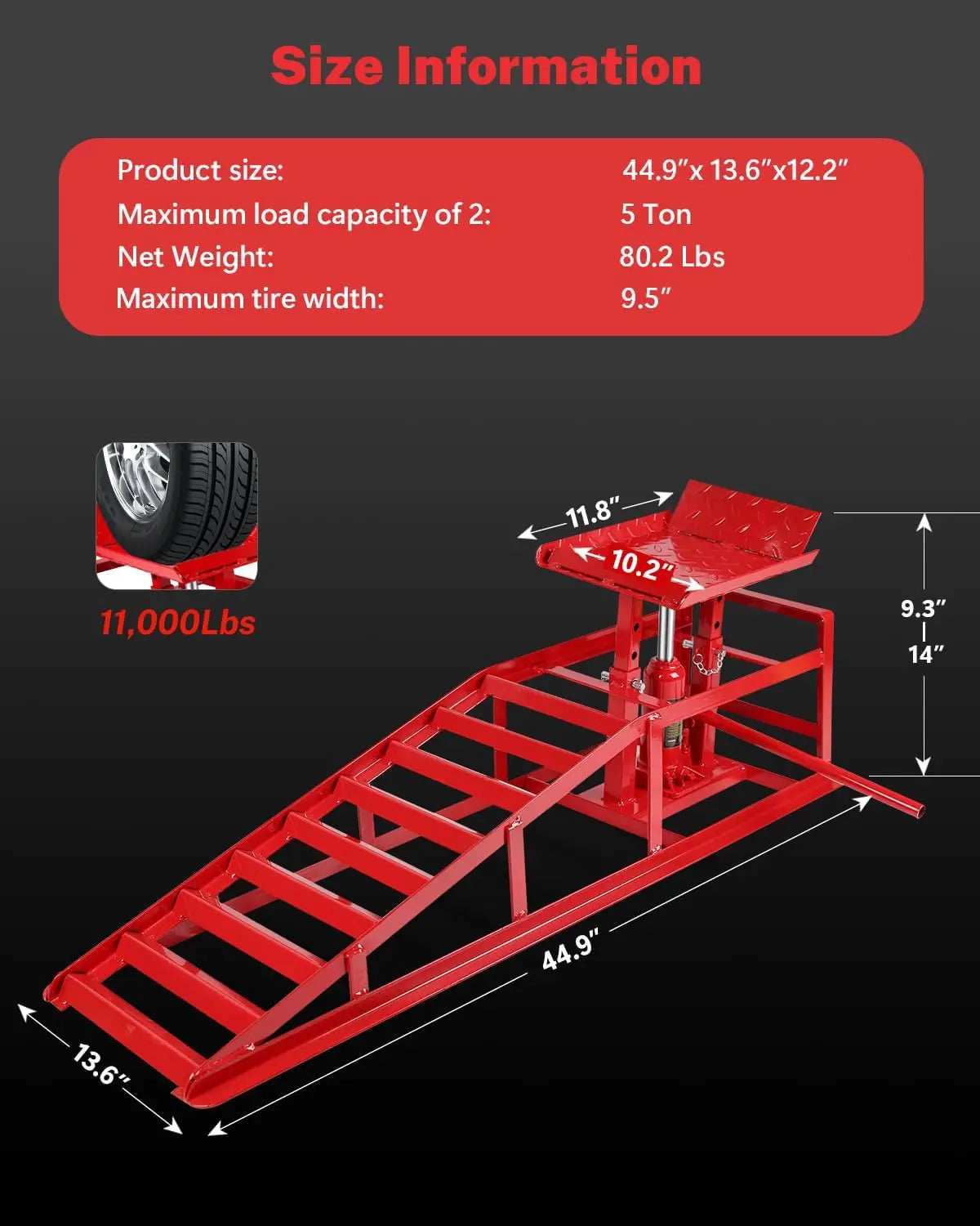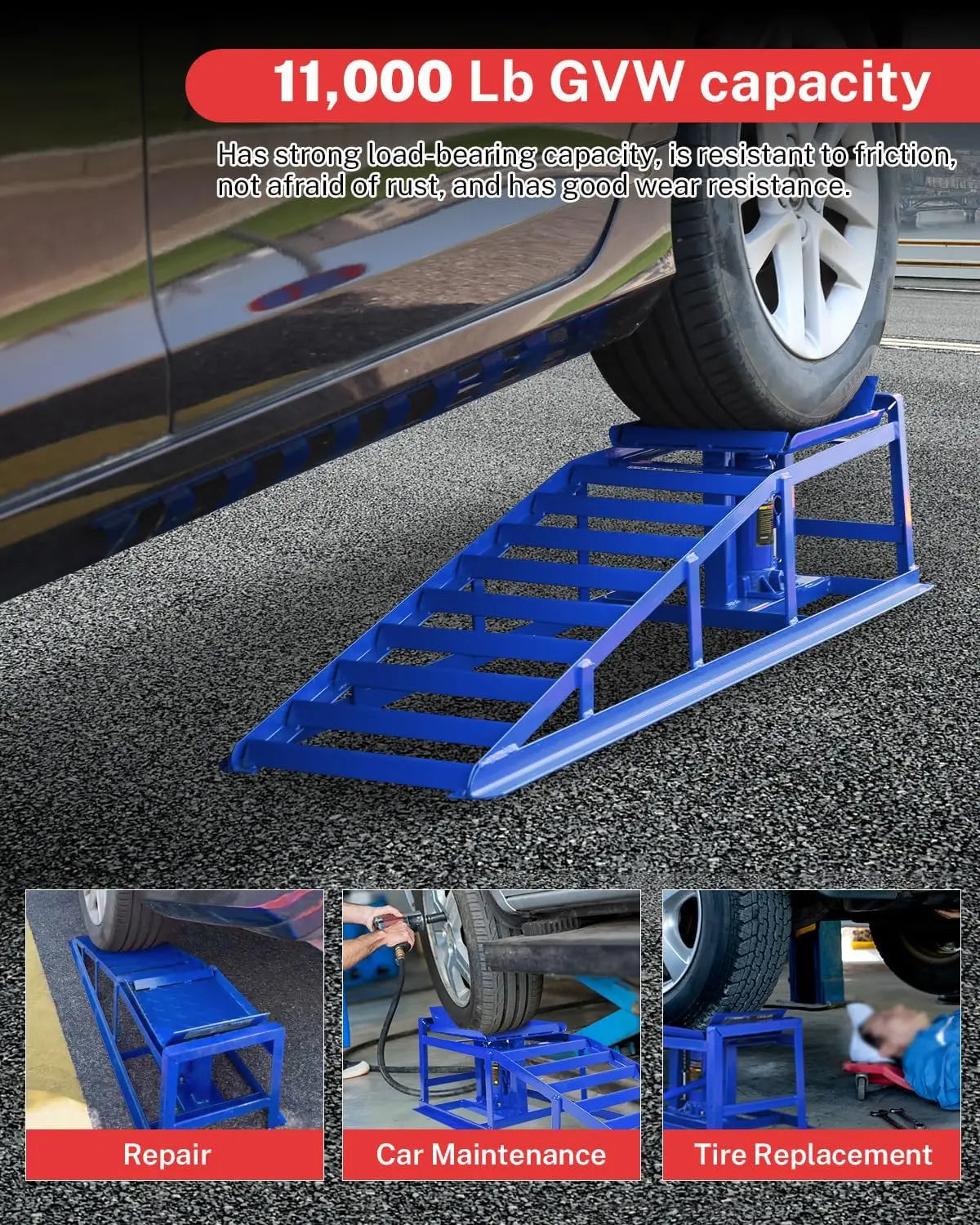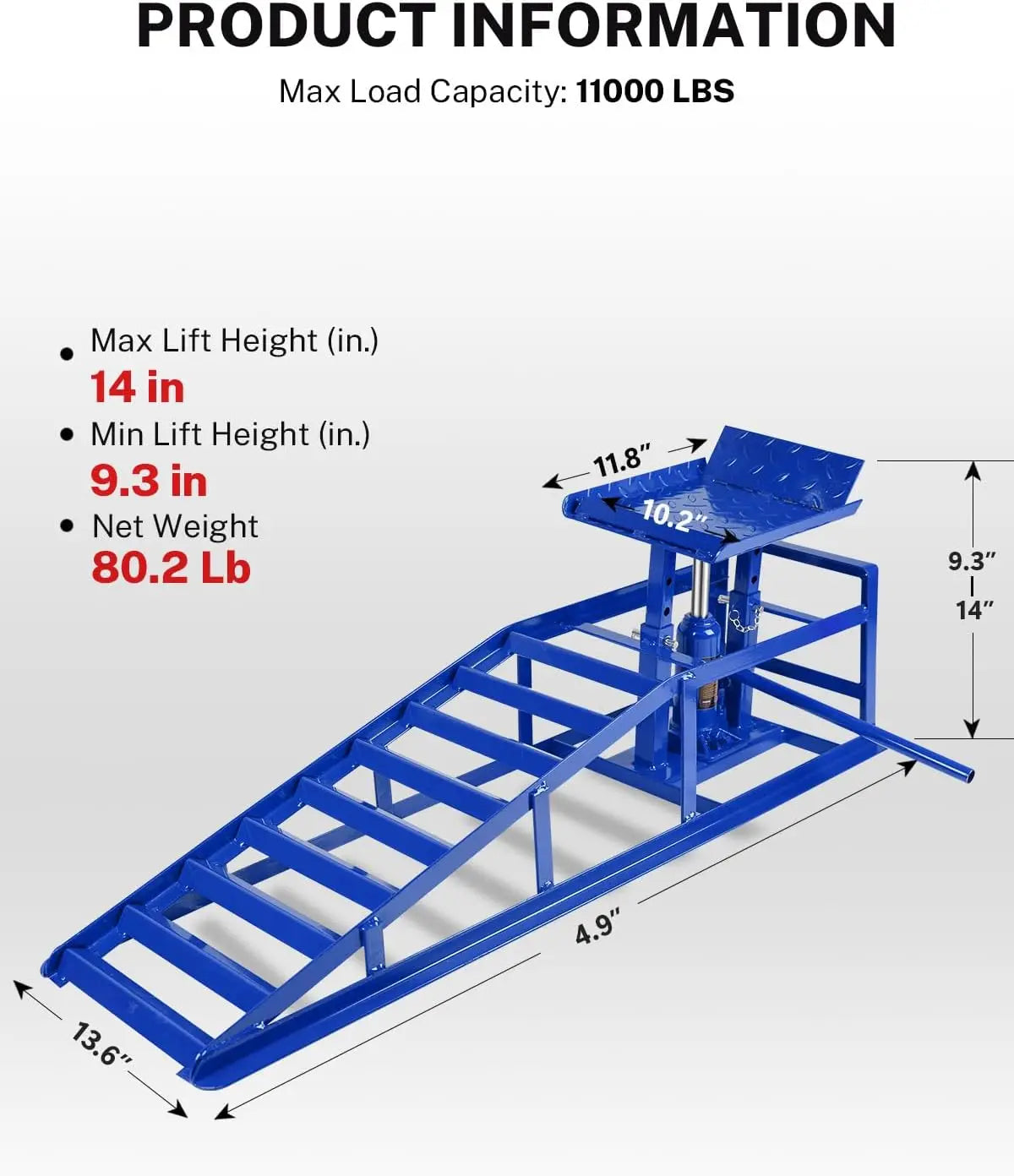 Exceptional load-bearing capacity: These hydraulic car ramps have an impressive load-bearing capacity of up to 5.0 kg, making them ideal for supporting most cars and light trucks. Whether for routine maintenance or professional repairs, you can use them with confidence and ensure the safety of your vehicle.