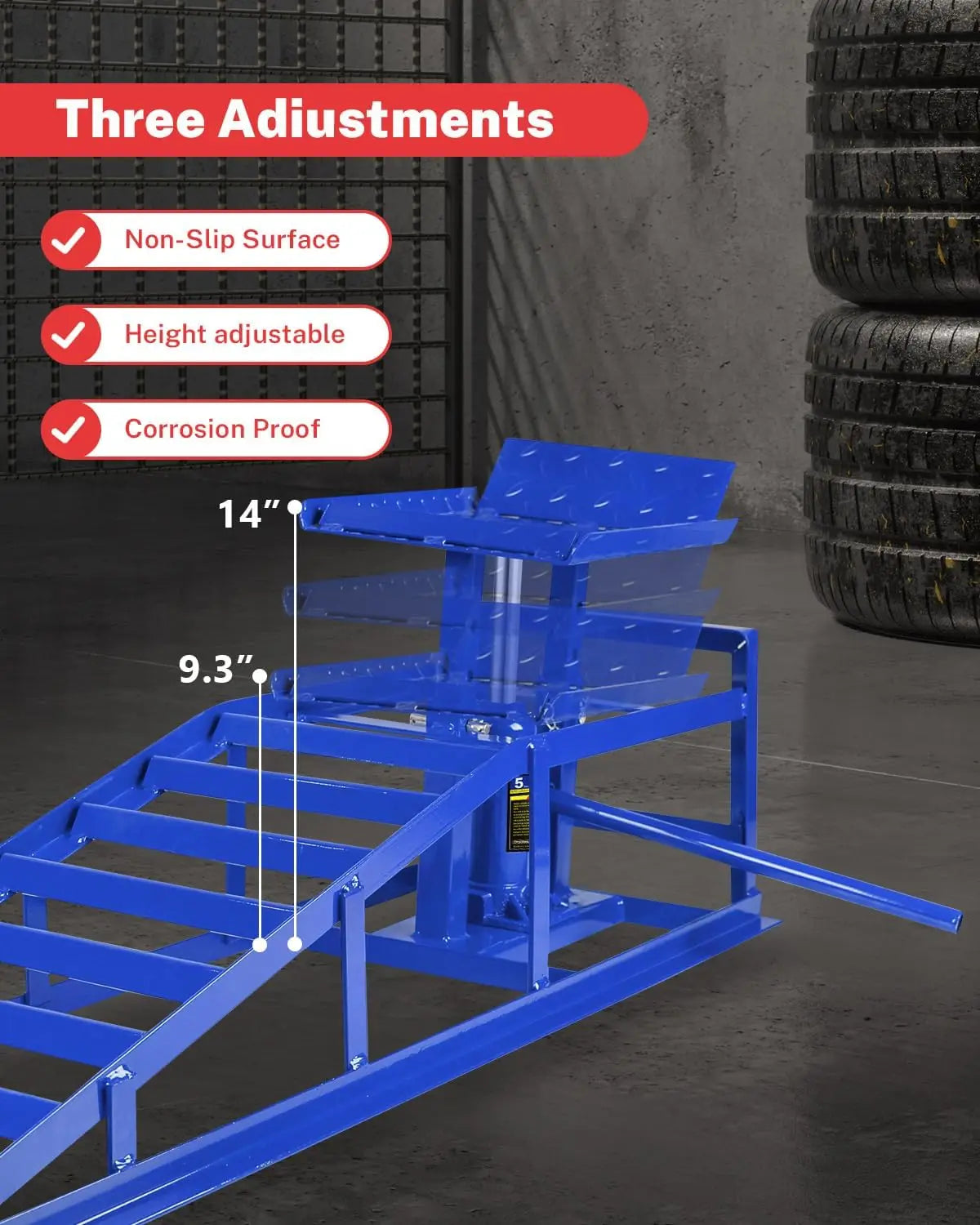 【Adjustable height design】 The hydraulic component allows easy height adjustment between 9.3 to 35.6 cm, suitable for different vehicle types. Whether you have a low profile sedan or a high clearance SUV, you can find the perfect height for more flexibility and comfort.
