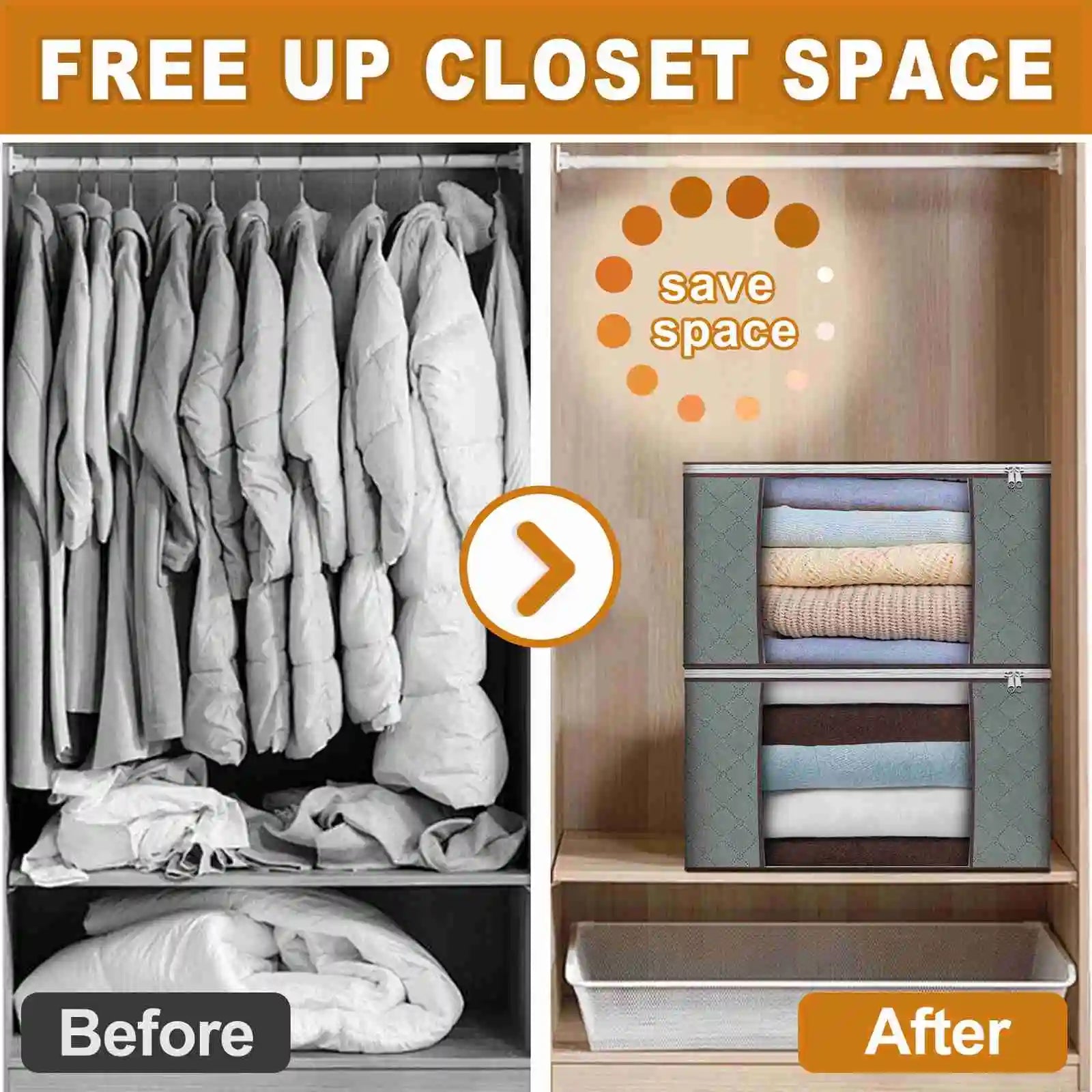 1. Large Capacity: Each storage bag measures 21.7x13.8x11.8in. It is spacious for your comforters, blankets, pillows, toys, jackets or other clothes. The storage containers protect your clothes from dust.