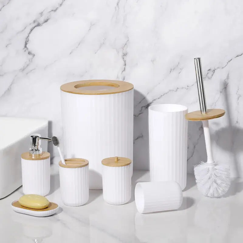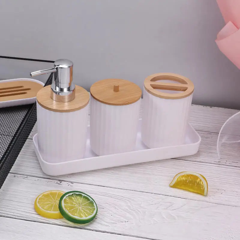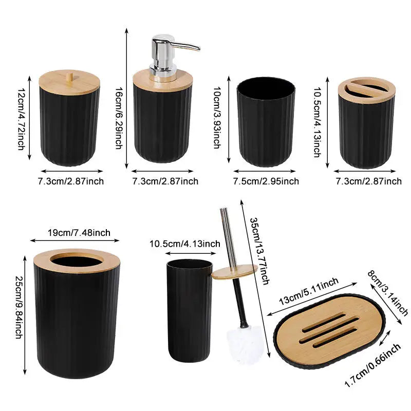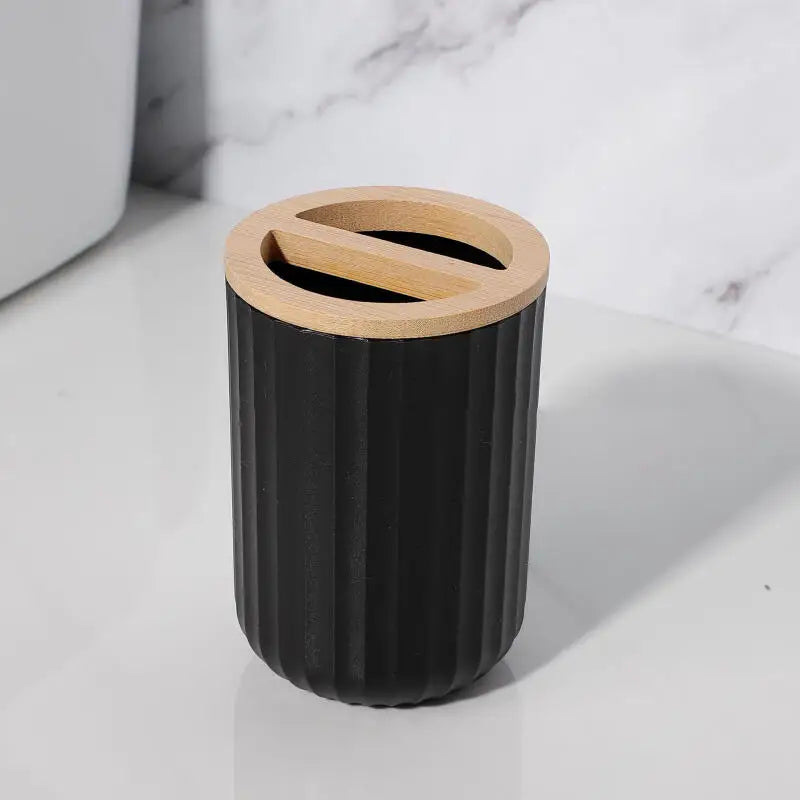 This wash set is available in three styles: black, white and light gray for you to choose from to meet the needs of different decoration styles.The bamboo cover design is adopted, which is both beautiful and environmentally friendly.Come and add a simple and practical wash set to your bathroom!