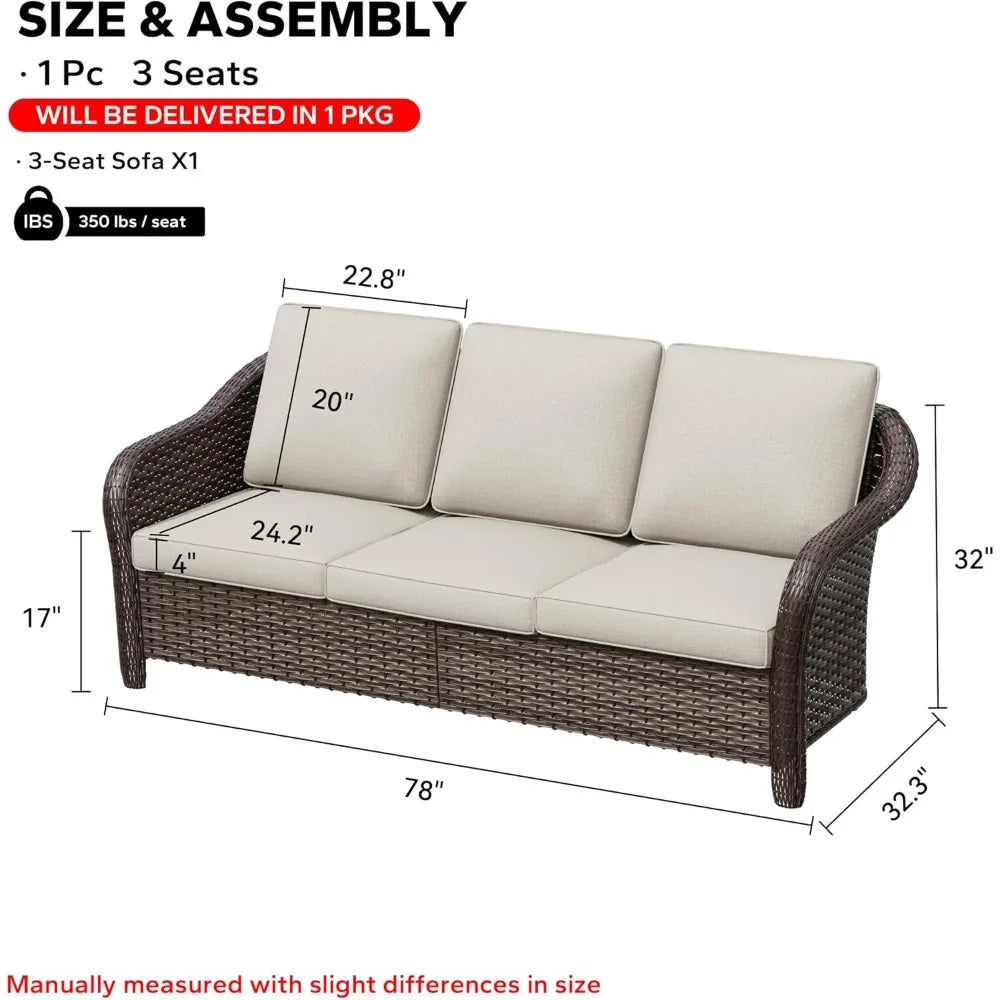 - Packing Included: 1x 3-seat patio wicker sofa. The tools and instructions needed for installation will also be in the box