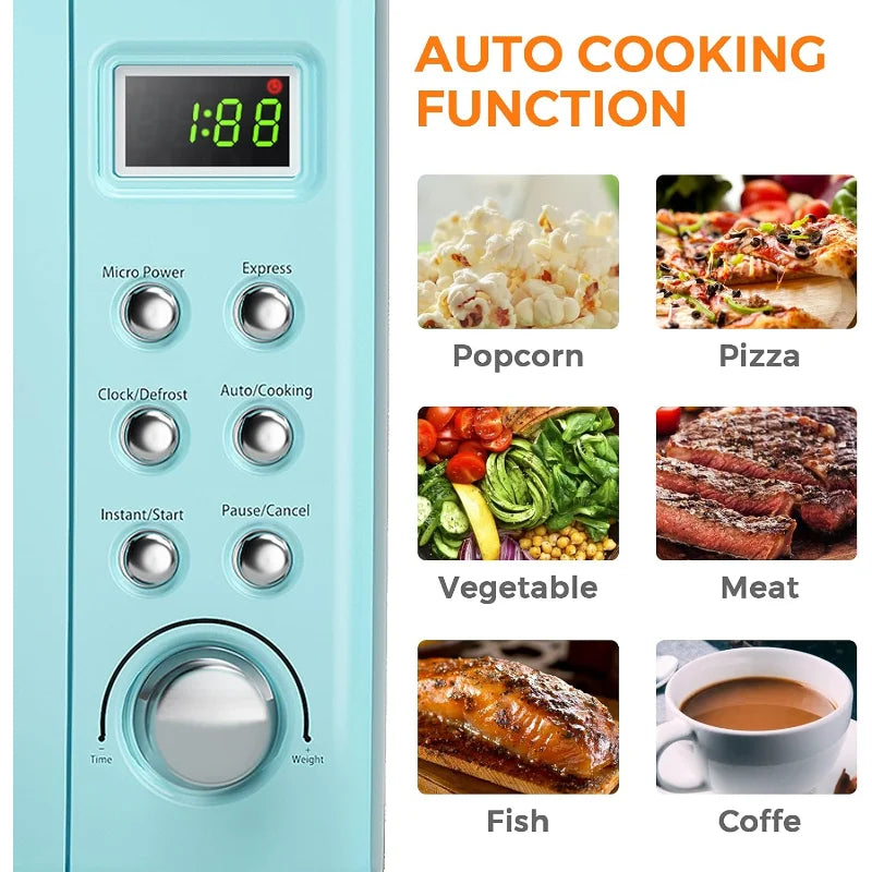 - 700W Output Power for Even Heating: Equipped with 700W power motor, this compact retro microwave offers high efficiency for heating your food or drinks. With smart technology, this small microwave oven can heat food or drinks evenly in 360 degrees.