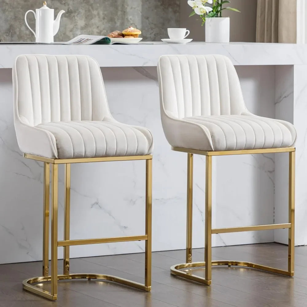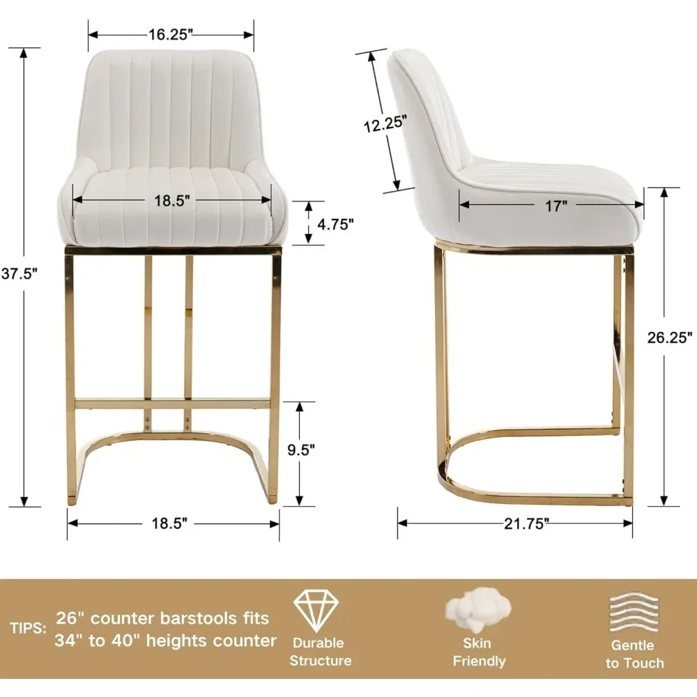 - 🍬Durable & comfortable fabric: The soft velvet material of the counter bar stool is quite skin-friendly, and the non-slip foot pads of the kitchen stool can protect the floor from scratches. The exquisitely sewn cushion and steel base in gold, with its modern minimalist design, make it suitable for both modern and traditional decor.