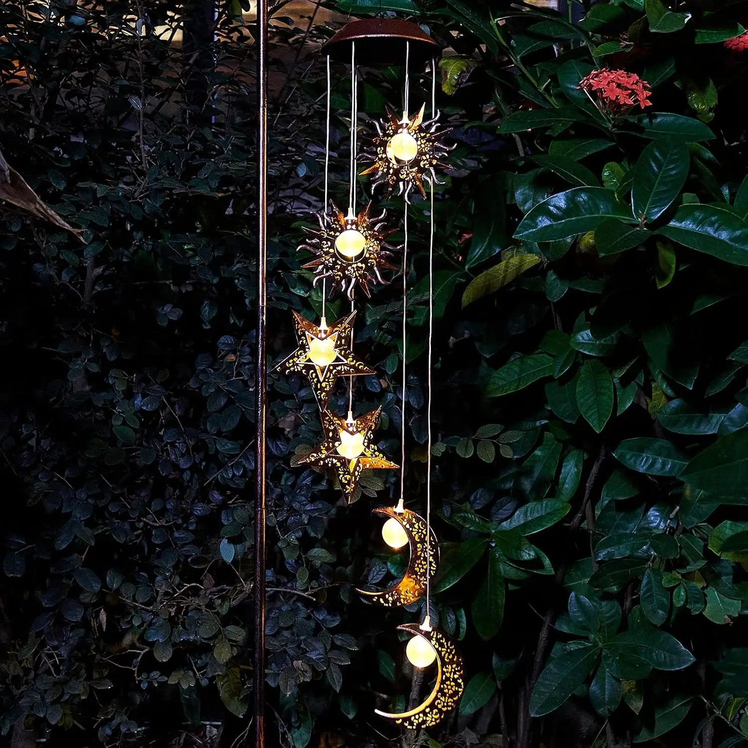 Outdoor Solar Wind Chimes w/ Sun Moon Star Lights