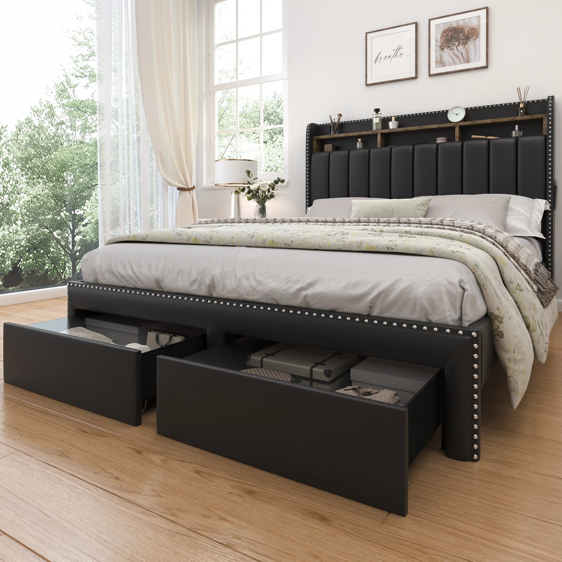 Queen LED Bed Frame W/ 2-Tier Wingback Headboard