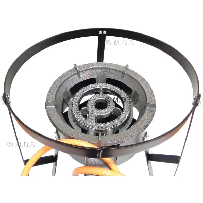 - -Stand made of heavy duty Cast Iron 19.5" in top diameter & 27" heigh Accommodate perfectly burner, Some assembly required ,Tools included