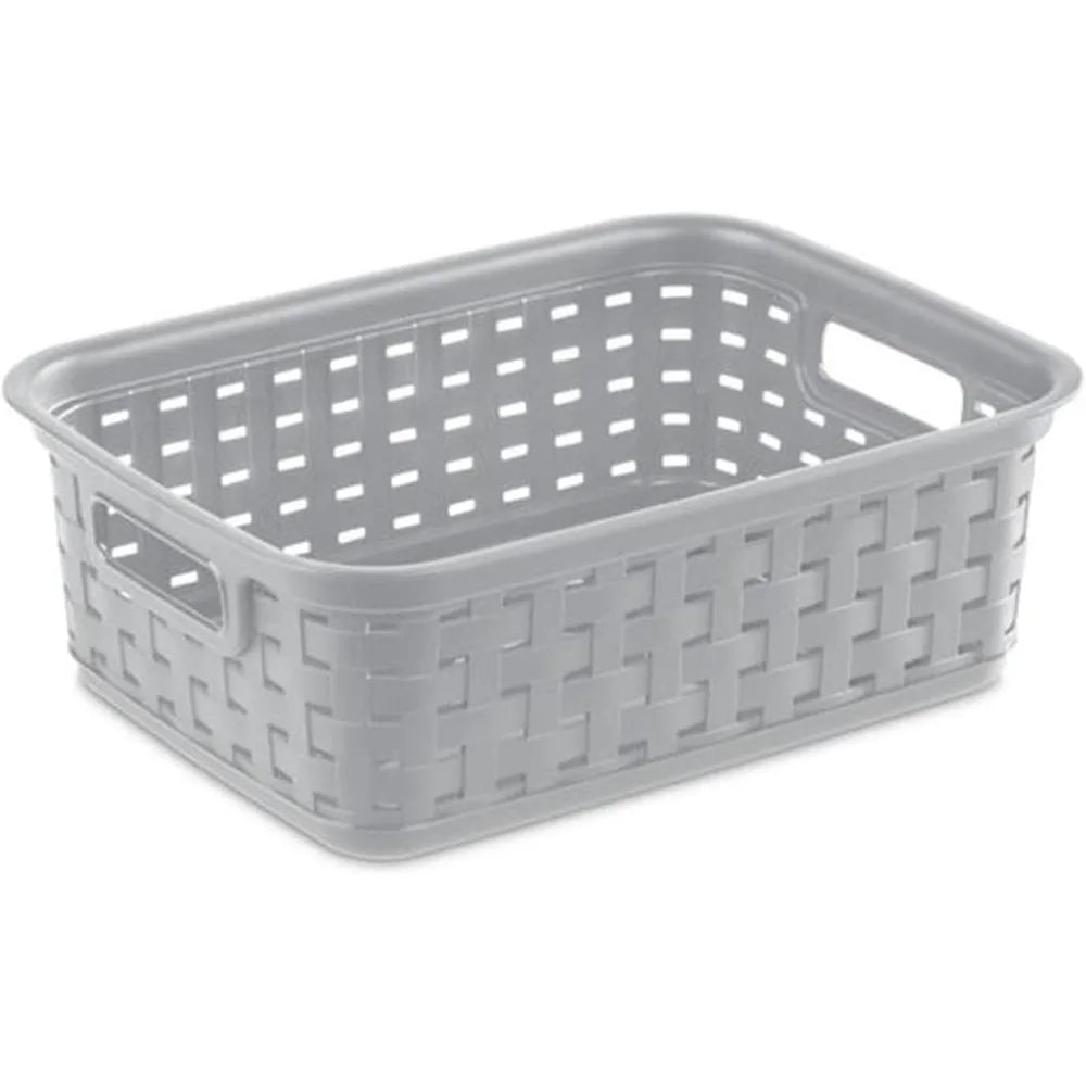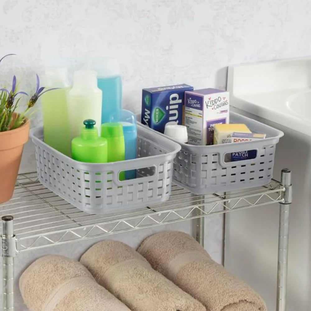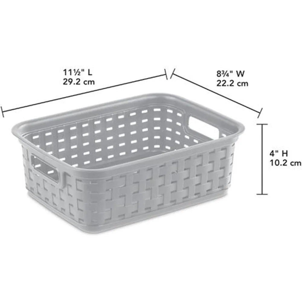 Rectangular shape measures 11.5 inches long, 8.75 inches wide, and 4 inches tall with an open top to efficiently find items at a glance