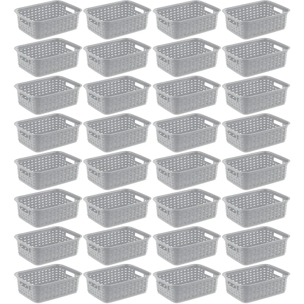 Includes 32 small weave baskets that add an attractive design to everyday storage, ideal for reducing clutter on countertops, pantries, and bookshelves