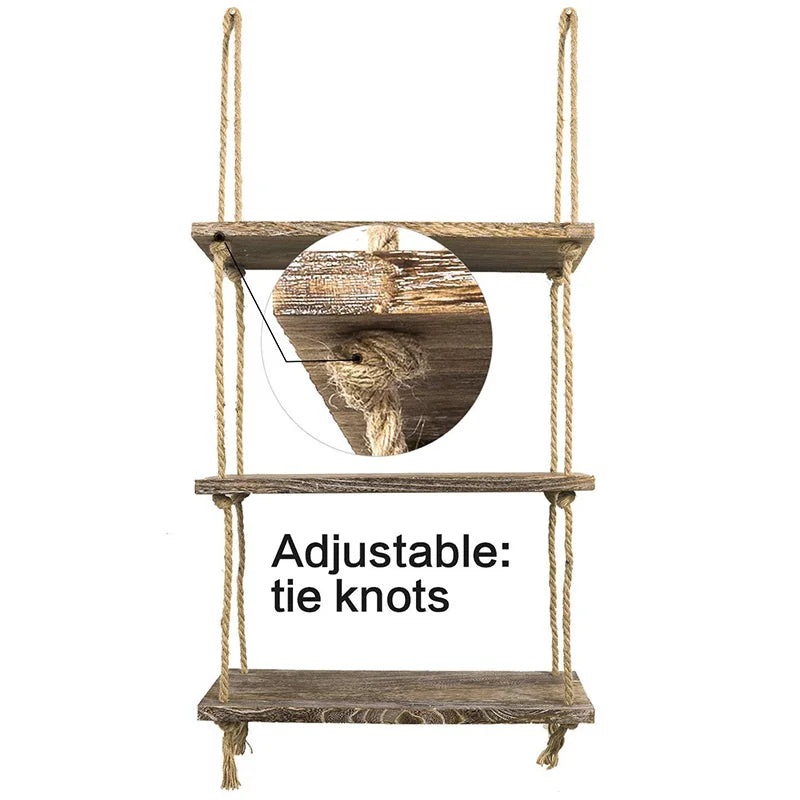 1.This wood hanging shelf is the perfect storage and decorate shelf for many rooms in the home. Living room for organize your books, lovely plants or candle, kitchen for storage spices or coffee cups, bathroom to hold towel, makeup or nail polish, bedrooms for display photo frames and mementos.